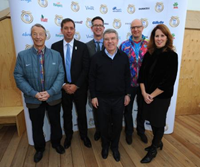 2.Le président du CIO Thomas Bach visite le l'espace Gillette à la P&G Family Home à SotchiContact pour la presse: