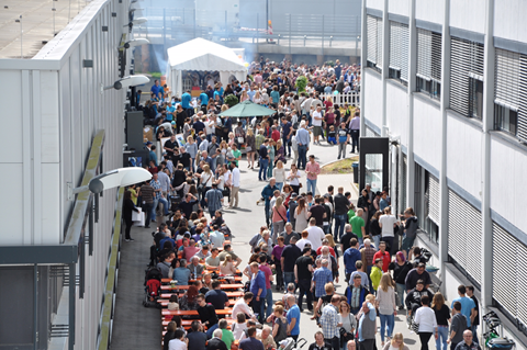 Nach der offiziellen Eröffnungsfeier am Freitag konnten sich dann am Samstag auch die Familien der Mitarbeiter beim Family Day einen Eindruck vom Neubau verschaffen. Alle Mitarbeiter des Werkes hatten die Gelegenheit, einen Tag gemeinsam mit ihren Familien auf Entdeckungsreise im Unternehmen zu gehen und den Angehörigen ihren Arbeitsplatz zu zeigen. Nach der Begrüßung durch Werksleiter Christoph Reif konnten die Teilnehmer neben einem Rundgang durch die Fertigungsbereiche mit Informationen zu wissenswerten Details, an verschiedenen Attraktionen, wie dem heißen Draht oder einer Segway-Fahrt teilnehmen. Mit Kinderschminken, einer Hüpfburg, einem Hochseilgarten und einer Ballonkünstlerin sorgte Procter & Gamble nicht zuletzt für ein unterhaltsames Kinderprogramm. Als Erinnerung an den Tag wurden personalisierte Büroklammern gefertigt oder die Fotos an der aufgestellten Fotobox ausgedruckt.