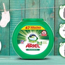 Die Ariel 3in1 Pods „Colorwaschmittel“ und „Vollwaschmittel“ sind ab Oktober in zwei neuen Familiengrößen mit Kindersicherheitsverschluss mit 47 oder 58 Waschladungen im Handel für 14,99 € UVP*3 beziehungsweise 19,99 € UVP*3 erhältlich.