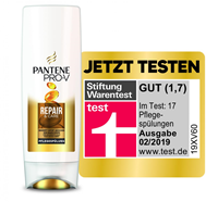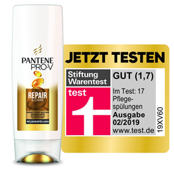 Schwalbach am Taunus, Januar 2019 - In der aktuellen Ausgabe von Stiftung Warentest (02/2019) wurden 17 Haarspülungen für geschädigtes Haar getestet. Die Pantene Pro-V Repair & Care Pflegespülung erhielt von der Stiftung Warentest das Qualitätsurteil „GUT“ (1,7). In puncto Geschmeidigkeit, Griff und Kämmbarkeit konnte Pantene Pro-V im Test eine sehr gute Bewertung erzielen. Damit bestätigt die Stiftung Warentest die hohe Qualität und Wirksamkeit der Repair & Care Pflegespülung.