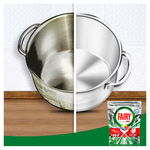 Dank des Mixes aus Pulver zur Entkrustung sowie dem dreifachen Gel-Booster bei Fairy Platinum Plus bzw. dem zweifachen Gel-Booster bei Fairy All-In-One liefern die Tabs eine leistungsstarke Reinigung bereits beim ersten Spülgang. Sie entfernen hartnäckigen Verschmutzungen sowie Fett effektiv und hinterlassen durch den integrierten Klarspüler einen brillanten Glanz, auch bei niedrigen Temperaturen und im Öko-Modus. Die Fairy Platinum Plus Tabs reinigen zusätzlich die Spülmaschinen, beschleunigen die Trocknung und enthalten eine Anti-Schleier-Technologie.
